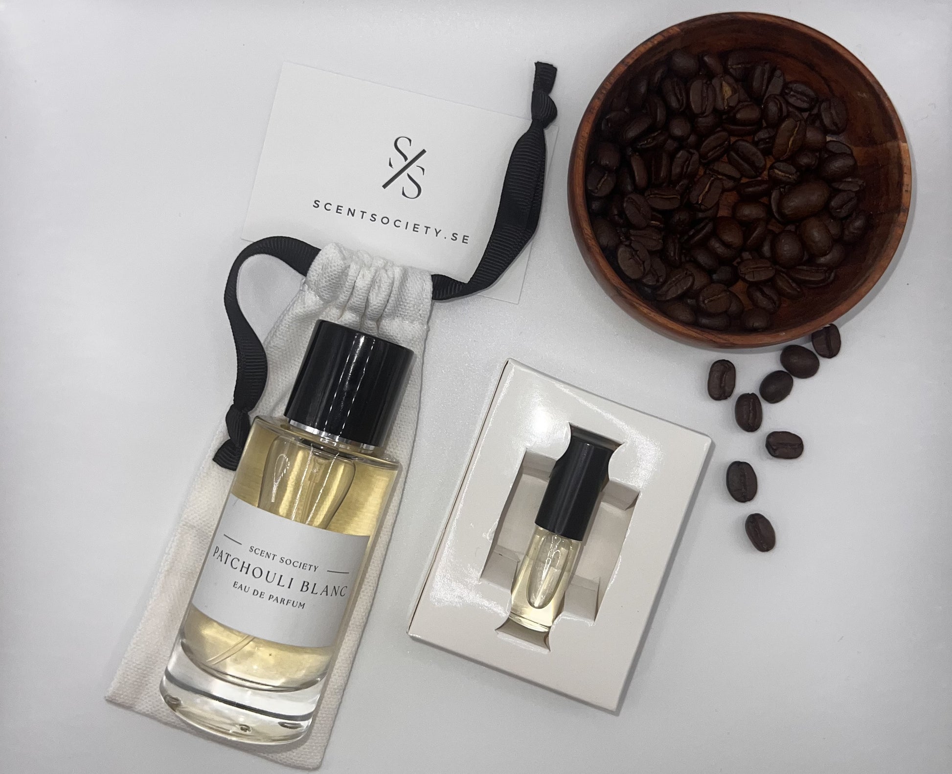 Scentsociety's "Blanc" är en elegant och modern tolkning av patchouli, där renhet möter sofistikation. Doften öppnar med en mjuk och krämig blandning av vit patchouli och pudrig iris, vilket ger en harmonisk och inbjudande start. I hjärtat blommar rosor som adderar en subtil romantik till doften, medan basen avslutar med varma och sensuella noter av mysk och en hint av krämig benzoin.